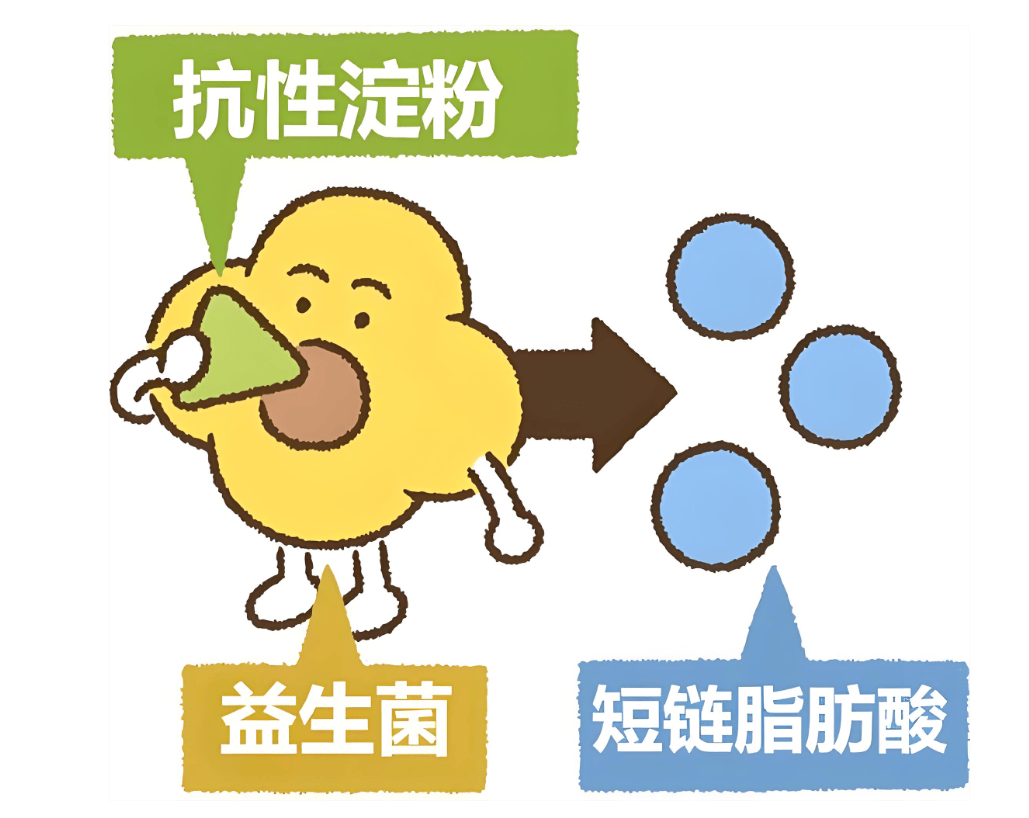但抗性淀粉不一样。它就像一个会绕路的特工,悄悄溜过胃和小肠的检查卡,直接奔向大肠。到了大肠以后,它变成了好菌的口粮。好菌吃饱了,壮大了,坏菌自然就被赶出去了。肠道生态恢复平衡,脂肪肝也就慢慢消退了。